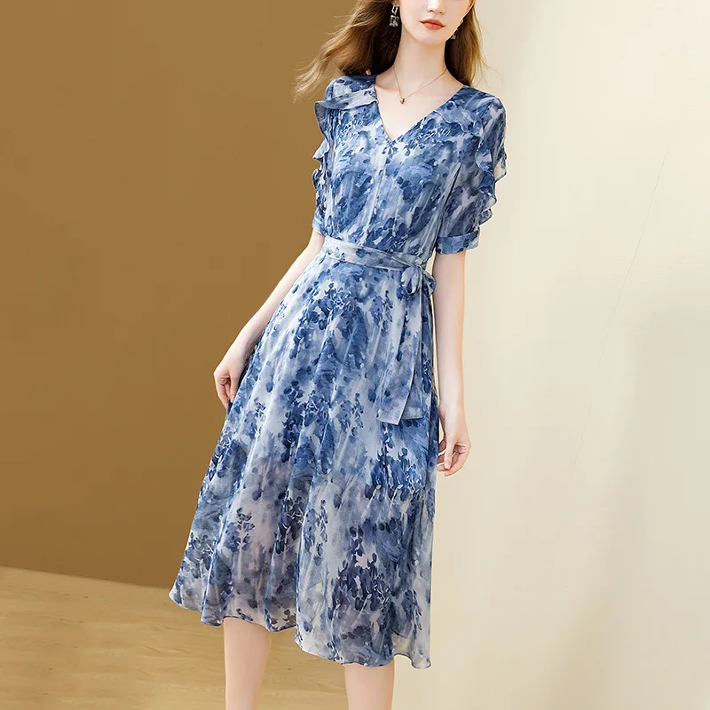 • اسم المنتج: فستان أزرق نيلي شيفون