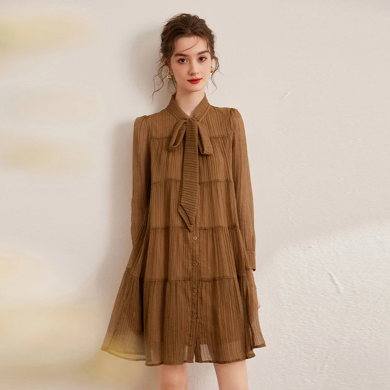 فستان نسائي من EVNISI بأكمام طويلة متوسط الطول مع فيونكة بأربطة وتصميم كاجوال أنيق جديد