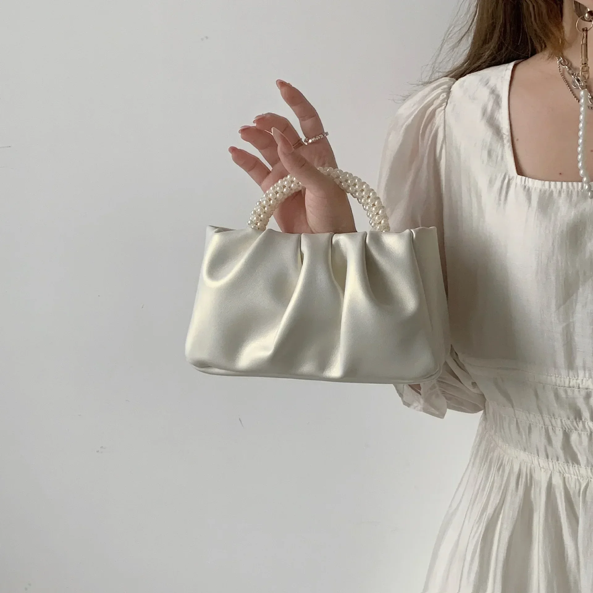 موضة اللؤلؤ مقبض المرأة عشاء مخلب محفظة حقائب اليد الفاخرة تصميم السيدات ساحة حقائب كتف أنثى حقيبة ساعي صغيرة